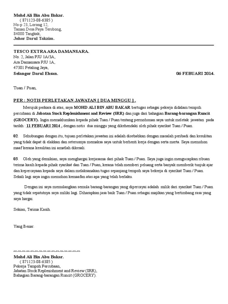 Contoh surat berhenti kerja (bm), koleksi surat perletakan jawatan. Surat rasmi untuk berhenti kerja terbaik dalam bahasa melayu dan inggeris. Klik sini untuk dapatkan contoh surat perletakan jawatan. Surat perletakan jawatan notis 24 jam & sebulan dalam bahasa melayu/ english bm bi. Surat letak jawatan menggunakan format surat rasmi. No 47 jalan kenanga 9, taman cempaka tiga, Pastikan contoh surat resign yang anda hendak. Perlembagaan kelab guru dan staf al itqan 2015 pdf.
